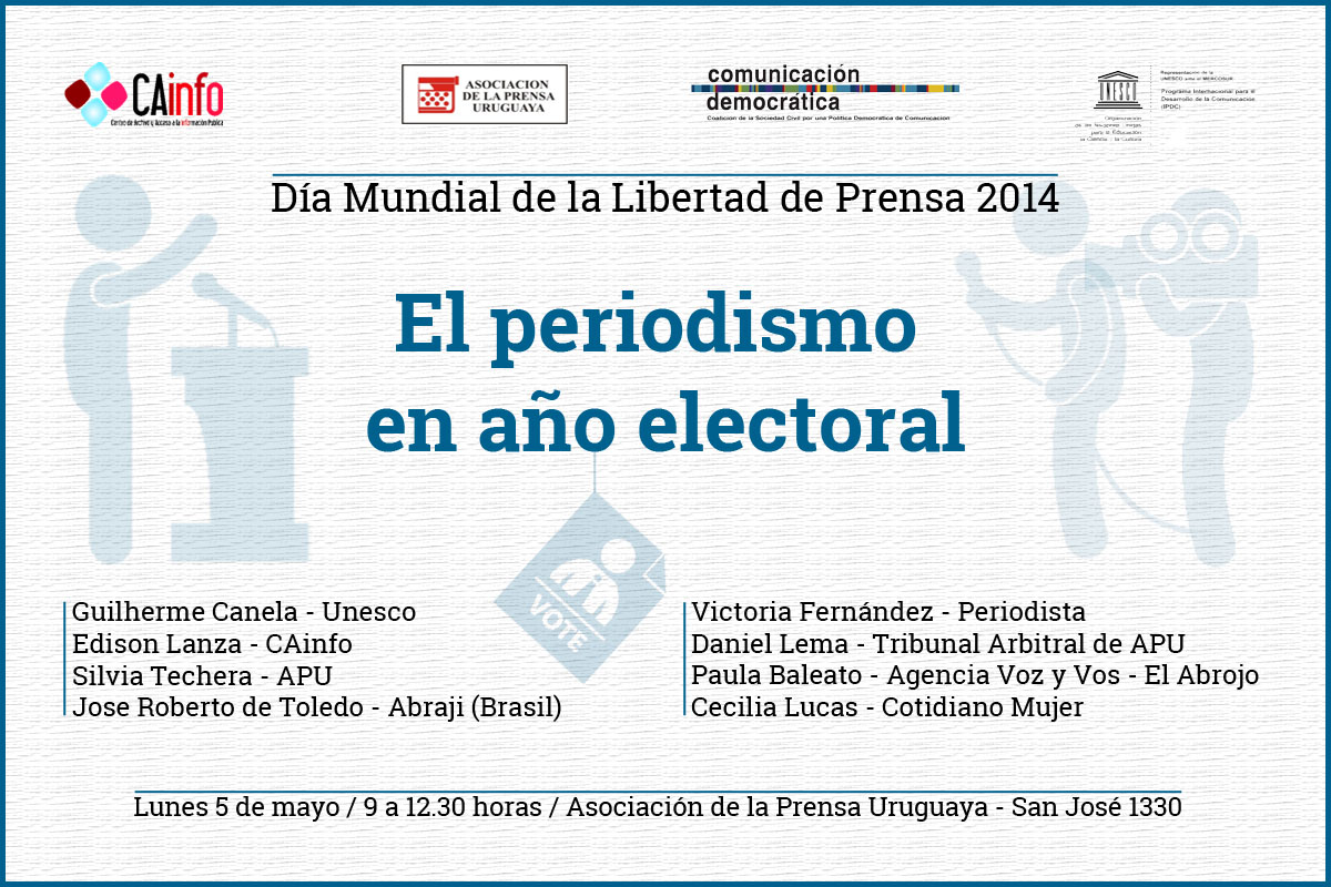 Por esta razón, la Oficina Regional de Unesco, el Centro de Archivos y Acceso a la Información Pública (CAinfo) y la Asociación de la Prensa Uruguaya (APU) organizan una jornada de debate y análisis sobre el papel de la prensa en el año electoral, como parte de la celebración de un nuevo Día Mundial de la Libertad de Prensa.